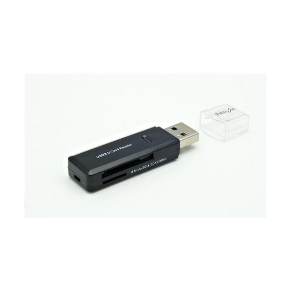 - フリーダム FCR-U3SDBK USB3.0対応カードリーダ ブラック●USB3.0対応の高速データ転送カードリーダです。●USB3.0対応なのでUSB2.0(480Mbps)の約10倍(5Gbps)の超高速転送規格対応です。※データは理論値です。●スマホやデジカメのデータをパソコンへ超高速転送。●SDXC/microSDXCメモリ双方のUHS-1に対応。●電源不要のバスパワータイプです。【仕様】インターフェイス:USB3.0準拠(USB2.0/1.1上位互換)最大転送速度:USB3.0/5Gbps(理論値)、USB2.0/480Mbps(理論値)コネクタ形状:USB Type-A(オス)スロット:SDメモリーカードスロットx1・microSDカード専用スロットx1対応OS:Windows10、Windows8.1、Windows7・Mac OSX(10.6)以降本体サイズ:W56xD17xH10mm本体重量:約7gその他:ストラップホール付
