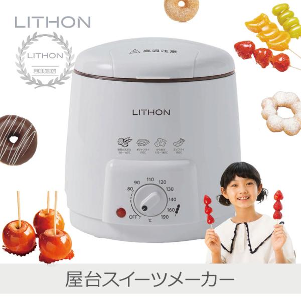 - ■■特長■■ りんごあめ・フルーツあめ・ドーナツなど おうちで屋台のお菓子が作れる! ■■ポイント■■ ●屋台スイーツがおうちで作れる! 屋台でおなじみのりんごあめや フルーツあめ、ドーナツがうちで 簡単に作れます。 お子様と屋台ごっこを楽しんだり、 ホームパーティにもオススメです。 ●揚げ物も作れる 電気フライヤーとして揚げ物調理も できます。 火を使わず、誰でも簡単に揚げ物を 調理することができます。 少量を手軽に揚げられるので お弁当のおかず作りにもピッタリです。 ●調理しやすい温度調節機能付き メニューに合わせて油の温度を 設定できます。 難しい揚げ物の温度調節も簡単に。 誰でも美味しい揚げ物が作れます。 ●調理温度目安表示 調理に合った温度が一目でわかる アイコンが本体にプリントされています。 ●便利なバスケット付き ポテトフライなど細かい揚げ物を 作るときに便利なバスケット付きです。 ●ふたをしたまま調理OK ふたをしたまま、油はねを気にせず 調理ができます。 周りを汚れにくいので、お掃除もラクラク! ●レシピ付き 取扱説明書にはりんごあめとドーナツの レシピがついています。 ●セット内容 本体、バスケット ■■製品仕様■■ メーカー:ライソン 型番:KDFY-06BA JAN:4573468825813 定格電圧:AC100V 定格周波数:50/60Hz 消費電力:600W 定格容量:約0.6L 油温度調節範囲:約80~190℃ 温度ヒューズ:192℃ 本体サイズ:約W160×D170×H170mm 本体重量:約510g 電源コード:約0.9m 付属品:バスケット 材質: 本体・油はね防止フタ:PP ダイヤル:PC 内鍋:アルミニウム バスケット:ステンレス □注意事項 ・モニターにより、色の見え方が 実際の商品と異なる場合がございます。 ・画像はイメージです。 商品、サイズにより柄の入り方など、 現物と多少異なる場合がございます。 ・製品改良のため予告なくデザイン、 仕様を変更する場合があります。