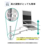 - 商品情報商品の説明主な仕様 流行に左右されないタイムレス・ロングライフといった北欧デザインの考えに影響を受けたマルチユースのアームスタンドが新登場。デュアルアーム: VESAマウントおよびノートPCホルダーはクイックリリース機能付きで取り付け・取り外しがとても簡単に行えます。 ノートパソコンとモニターを左右入れ替える場合でも工具なしで取り換えも簡単に行うことができます。ノートPCホルダー: 11〜17.3インチのノートパソコン1台を設置してご利用いただくことができます。 ノートパソコンをサブマシーンとして使えば、机の上が広く使えてあなたの作業空間がさらに快適になります。ダブルクランプ: 最大荷重は9kg、天板厚さが7cmまでの机に設置が可能です。クランプを回して支柱を固定するだけ、ダブルクランプだからデスクにしっかり固定ができ、予期せぬ地震やアクシデントからディスプレイの転倒を防ぎます。アーム先端高さも190mm〜430mmと広範囲に調整が可能。支柱の後ろにある蝶ネジを回してディスプレイ高さを調整します。