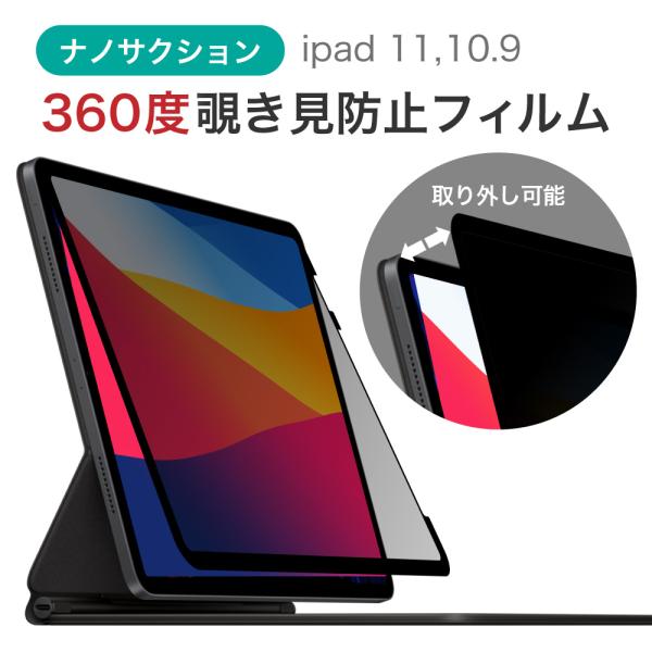 LOE(ロエ) 360度 ナノサクション式 覗き見防止フィルム iPad Pro 11 M2 2022 /iPad Air5 第5世代 Air4 プライバシーフィルター ブルーライトカット 反射防止