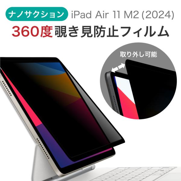 LOE(ロエ) 360度 ナノサクション式 覗き見防止フィルム iPad Air 11インチ (M2, 2024) プライバシーフィルター ブルーライトカット 保護フィルム 反射防止