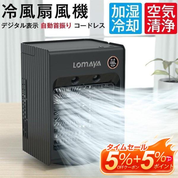 冷風機 冷風扇 自動首振り 充電式 卓上扇風機 静音 スポットクーラー 3段階風量調節 次亜塩素酸水対応 コードレス 7色ライト付き 冷風扇風機
