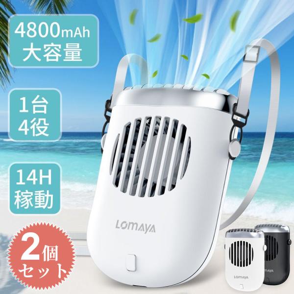 「最新版&2台セット」多機能扇風機 4800mAh 大容量 ネッククーラー 1台4役 首掛け 腰掛け 手持ち 卓上 ハンズフリー扇風機連続14時間稼動 羽なし