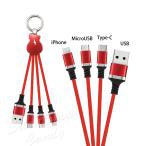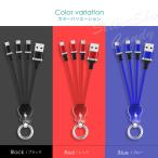 充電ケーブル 3in1 USBケーブル ストラップ キーホルダー マルチケーブル iPhone Micro USB Type-C ライトニング アンドロイド ケーブル LSF-063
