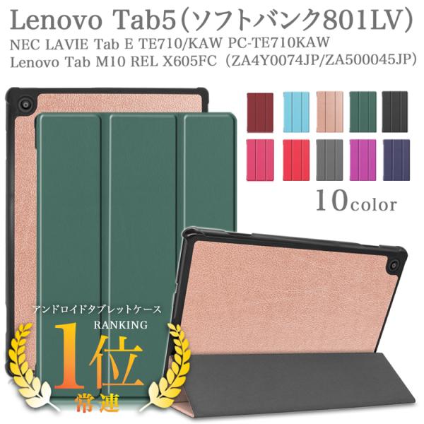 タッチペン フィルム2枚付 Lenovo ケース tab5 レノボタブレット Tab 5 ソフトバンク 801LV M10 REL LAVIE Tab E カバー オートスリープ機能付 耐衝撃