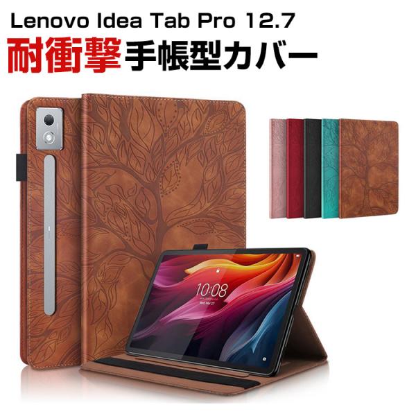 レノボ Lenovo Idea Tab Pro 12.7型(インチ) 2025用の持ちやすい 汚れ防止 スタンド機能 カード収納 ブック型 便利性の高い ケース 耐衝撃 手帳型カバー