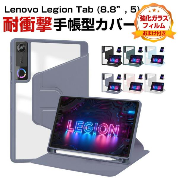Lenovo Legion Tab (8.8”, 5) ZAH20015JP 専用360度回転ケース縦横自由に使える透明背面でデザインを活かしながらしっかり保護 強化ガラス付き