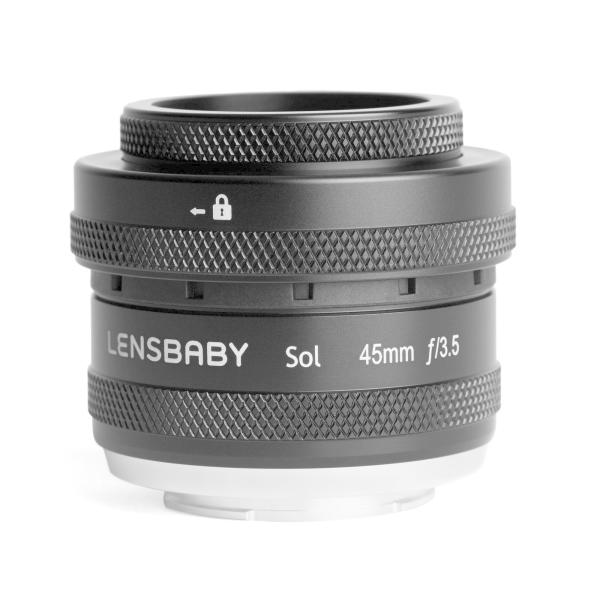 - SOL 45は、コンポーザープロII同様のティルト機能を実現しながらも、よりコンパクトな鏡筒とした新たなレンズベビーです。ティルト角は8.5°で、画面の中のどこにでも、丸くピントが合ったエリアを移動できます。センターロック機構を装備し、中心位置で簡単にピント合わせができます。