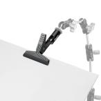 カメラ用のアームに取り付けられるネジ穴を備えたクリップ。撮影の小道具やレフ版などを固定できます。