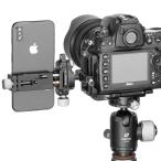 アルカスイス互換のL型ブラケットやロングレンズサポートに装着してカメラとスマートフォンによる2台体制撮影が可能となります。
