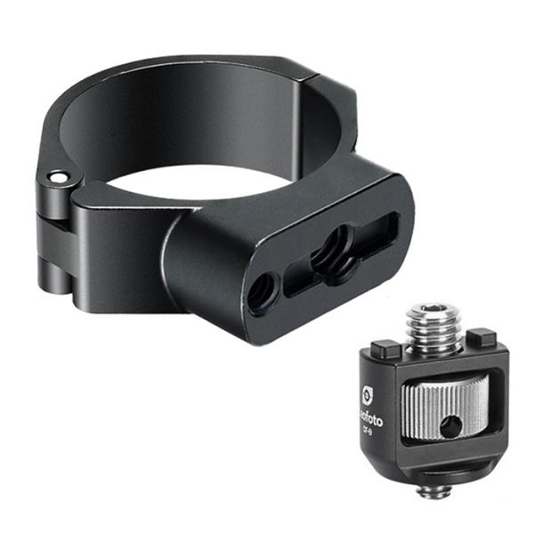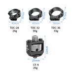 マルチクランプよりコンパクトに各種アクセサリーを取付可能にするアタッチメントです。ご使用になる三脚のパイプ径に応じたTDC-28+CF-9(パイプ径28mm用)・TDC-32+CF-9(パイプ径32mm用)・TDC-36+CF-9(パイプ径36mm用)の3サイズからお選びください。