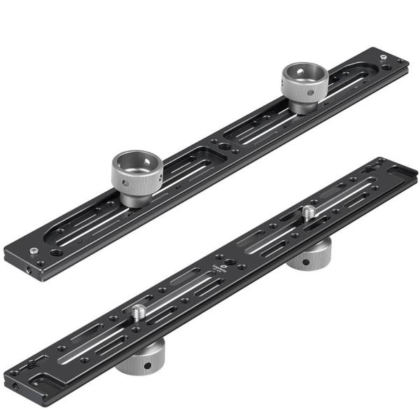 ロングレールタイプの多目的クイックリリースプレート。付属の三脚ネジでツインプレートとして活用したり、製品上のネジ穴にアームや各種アダプターを取り付けるなど様々な用途に活用頂けます。
