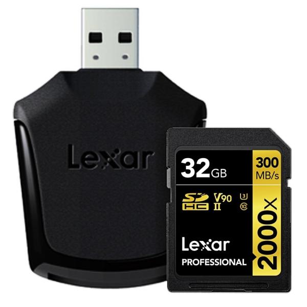32GB SDHCカード SDカード Lexar レキサー Professional 2000x Class10 UHS-II U3 V90 R:300MB/s W:260MB/s UHS-II カードリーダー付 LSD32GCBJP2000R ◆メ