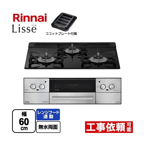 Lisse リッセ 乾電池タイプ ビルトインコンロ 幅60cm リンナイ RHS31W42J1RSTW-13A オーブン接続対応 ナイトブラック 【都市ガス】