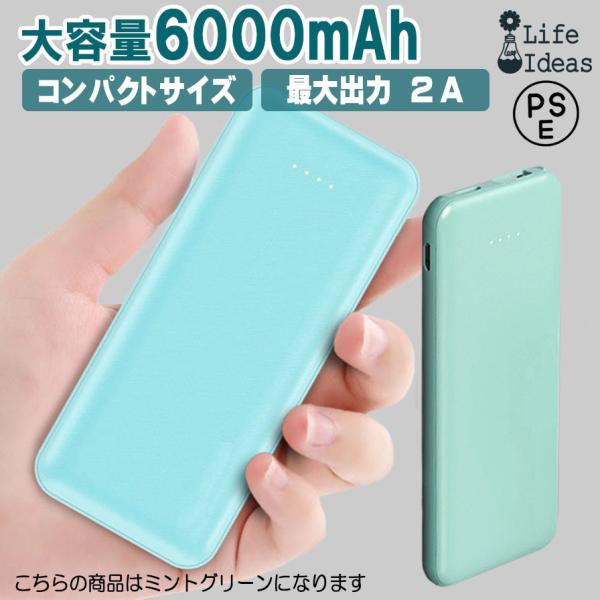 モバイルバッテリー MB005 ミントグリーン 6000mAh コンパクト 超軽量 microUSB/Type-C入力 5V2A出力 90日保証[M便 1/3]