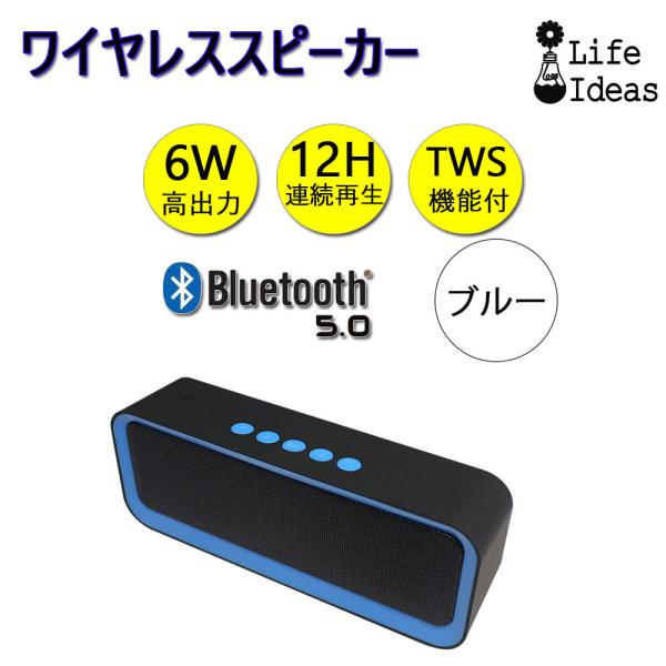 ワイヤレススピーカー ブルー Bluetooth5.0 バッテリー内蔵 最大出力6W 重低音 TWS対応 軽量 マイク内蔵 90日保証