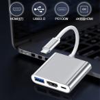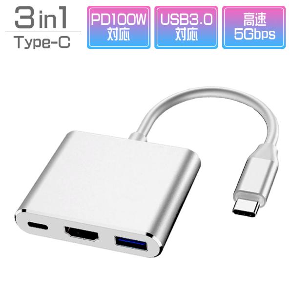USBハブ シルバー Type-C 3in1 PD100W対応 4K対応HDMIポート USB3.0ポート 90日保証[M便 1/3]