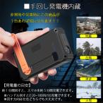 モバイルバッテリー TS083 オレンジ 12000mAh USB/ソーラー/手回し充電 LED懐中電灯 PSE適合 90日保証