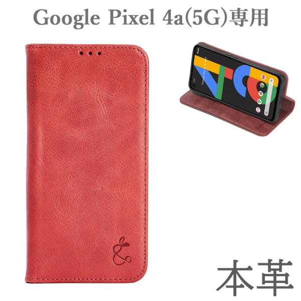 Google Pixel 4a(5G)専用 スマホケース レッド 手帳型 本革 ベルト無し スタンド 7日保証[M便 1/2]
