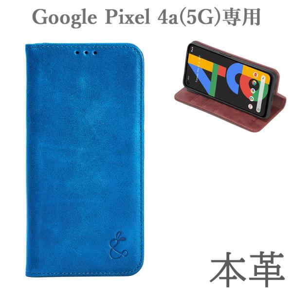 Google Pixel 4a(5G)専用 スマホケース ライトブルー 手帳型 本革 ベルト無し スタンド 7日保証[M便 1/2]