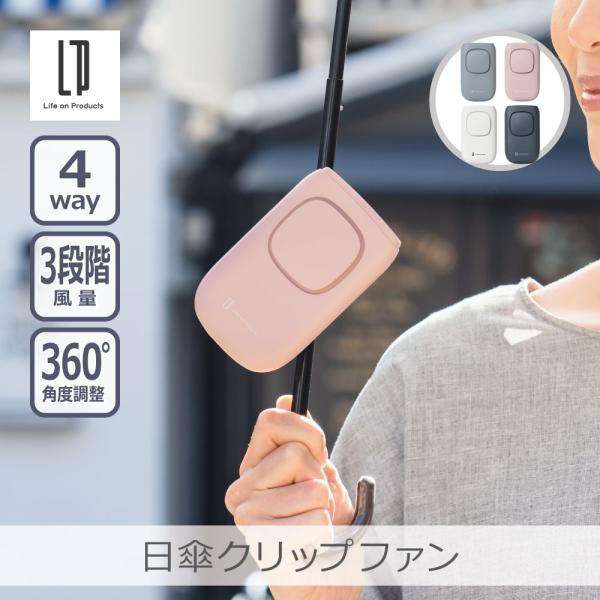 【めざましテレビで紹介】日傘クリップファン 全4色 | LCAF008 4WAY 角度調節可能 3段階風量 リズム風モード 誤作動防止 充電カバー付き
