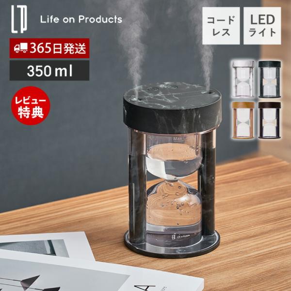 砂時計型コードレス加湿器 ライト機能付 LCAHF001 加湿機 卓上 コンパクト SIAA 抗菌 コードレス デュアルミスト 超音波式 おしゃれ 木目柄