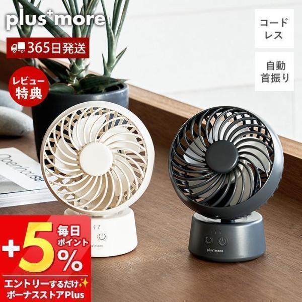 ラウンドミニデスクファン 首振り機能付 扇風機 リビングファン コンパクト 卓上 充電式 コードレス 可愛い PBAF005 プラスモア plus more