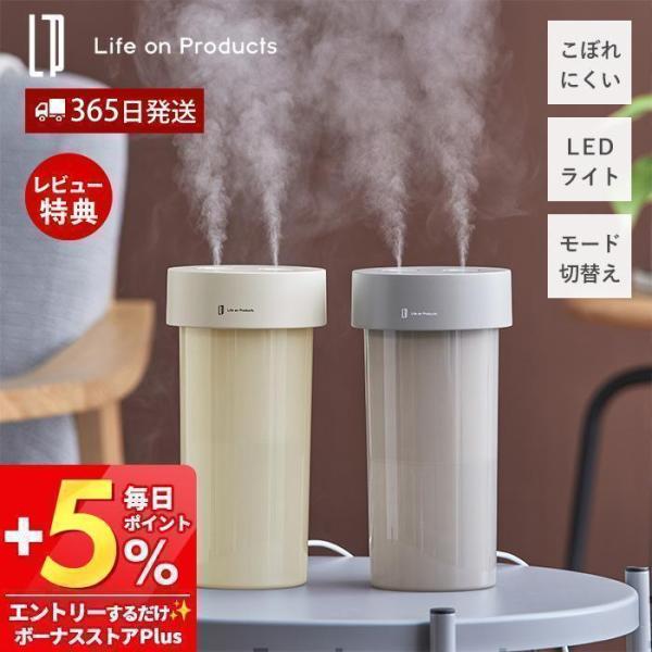 - Life on Products USB給電式ファン内蔵ツインジェット加湿器 広範囲にミストを届ける ファン内蔵の超音波加湿器 コンパクトながら広範囲に潤いを届けてくれる『 Life on Products USB給電式ファン内蔵ツインジェット加湿器 』。超音波式加湿器では珍しいファン内蔵タイプで、送風によってミストを拡散します。ミストは2つの噴霧口から出るデュアルミストと、左右交互に噴霧するシングルミストが選べて、使う場所に適した加湿が可能。タンク容量は800mLで、最長運転時間は8時間。倒れても水がこぼれにくい設計で、オートオフや2段階調光LEDライトなど、便利な機能も備えたパーソナル加湿器です。 スペック 品名 Life on Products / ライフオンプロダクツUSB給電式ファン内蔵ツインジェット加湿器 品番 / JAN オフホワイト:LCAHF011-OW / 4944370061635モカ:LCAHF011-MO / 4944370061642 サイズ 約 幅 110mm×奥行き 115mm×高さ 215mm 重さ 約 350g タンク容量 800mL 加湿方式 超音波式( 超音波振動加湿方式 ) USBコードの長さ 約 75cm 電源 DC5V 0.7A 消費電力 約 3.5W 加湿量 連続運転時:80mL/h( ±20mL )間欠運転時:40mL/h( ±20mL )※使用状況により変動します。 連続加湿時間 連続運転時:4時間間欠運転時:8時間※オートオフ機能搭載 機能 ・2つの噴霧口から出るデュアルミスト ・左右交互に噴霧するシングルミスト ・加湿運転モード:2段階( 連続運転 / 間欠運転 ) ・LEDライト搭載( 2段階調光 ) ・タンクの水がなくなると自動で運転を停止 保証期間 メーカー保証1年 付属品 充電用コード USB Type-C( 本体側:Type-C / 電源側:Type-A )、吸引軸×4( 2本は本体取り付け済み )、取扱説明書( 保証書含む ) お手入れ ・タンクの水は毎日新しい水道水と入れ替えてください。 ・タンク、吸引軸、吸引軸キャップを水洗いしてください。 ・ミスト噴出口( 超音波振動板 )や本体裏側はやわらかい布などで掃除してください。 ・本体外側のお手入れは、水で濡らしたやわらかい布で拭き取ったあと、から拭きしてください。 ・塩素系、酸性、アルカリ性、加湿器用洗浄剤は、ミストに混じる可能性があるため使用しないでください。 備考 ・充電式ではありません。 ・ACアダプターは付属しません。定格出力が5V/0.7A以上のものを別途ご用意ください。 ・USB PD( パワーデリバリー )対応のACアダプターやUSBコードを使用しないでください。 ・加湿しないときも、LEDライトのみで照明として使うことができます。 ・ミストが出にくくなってきたら吸引軸を交換してください。 ・吸引軸が十分に水を吸っていない状態で電源を入れると、ミストが出ない場合があります。初めて起動する際や吸引軸を交換した際は、吸引軸を十分に湿らせてから本体にセットしてください。 ご注意点 ※製品仕様やパッケージは改良のため予告なく変更される場合があります。 ※サイズや色味は個体により若干の差異が生じることがあります。 ※商品の色は、画面上の画像と実物とでは多少異なる場合があります。あらかじめご了承のうえ、お買い求めください。 ※アロマオイルなどの芳香剤や、40℃以上のお湯は入れないでください。 ※湿度の高い場所、暖房器具・テレビなどの電化製品・水や熱に弱いテーブルや棚などの上、高所など不安定な場所、小さなお子さまやペットが触れるところでは保管・使用しないでください。 【DR00049】Life on Products ライフオンプロダクツ USB給電式ファン内蔵ツインジェット加湿器 LCAHF011 広範囲にミストを届けるファン内蔵の超音波加湿器 コンパクトながら広範囲に潤いを届けてくれる『 Life on Products USB給電式ファン内蔵ツインジェット加湿器 』。超音波式加湿器では珍しいファン内蔵タイプで、送風によってミストを拡散します。ミストは2つの噴霧口から出るデュアルミストと、左右交互に噴霧するシングルミストが選べて、使う場所に適した加湿が可能。タンク容量は800mLで、最長運転時間は8時間。倒れても水がこぼれにくい設計で、オートオフや2段階調光LEDライトなど、便利な機能も備えたパーソナル加湿器です。 Point 2種類の加湿モード 内蔵ファンで広範囲にミストを届けられるだけでなく、2つの噴霧口から出るデュアルミスト( 連続運転 )と、左右交互に噴霧するシングルミスト( 間欠運転 )の2種類のミスト噴霧機能を搭載。ミスト量が選べるので、お部屋の乾燥具合に適した加湿が行えます。 卓上サイズでしっかり潤すデスクの上にも置きやすいコンパクトサイズで、タンク容量は800mL。連続運転時なら80mL/hの加湿能力を備え、パーソナルスペースを十分に加湿。こまめに給水しなくていいので、デスクワークに集中したいときにもおすすめです。 操作はシンプル 電源スイッチ1つですべて操作できるシンプル設計。スイッチを押すたびに連続運転、間欠運転、電源OFFと切り替わります。 Point ベッドサイドの間接照明にも 2段階調光が可能なLEDライトを搭載。ほのかな暖色系の優しい明かりなので、寝室のベッドサイドやリラックスタイム時の使用にもおすすめ。加湿はせずにライトのみ点
