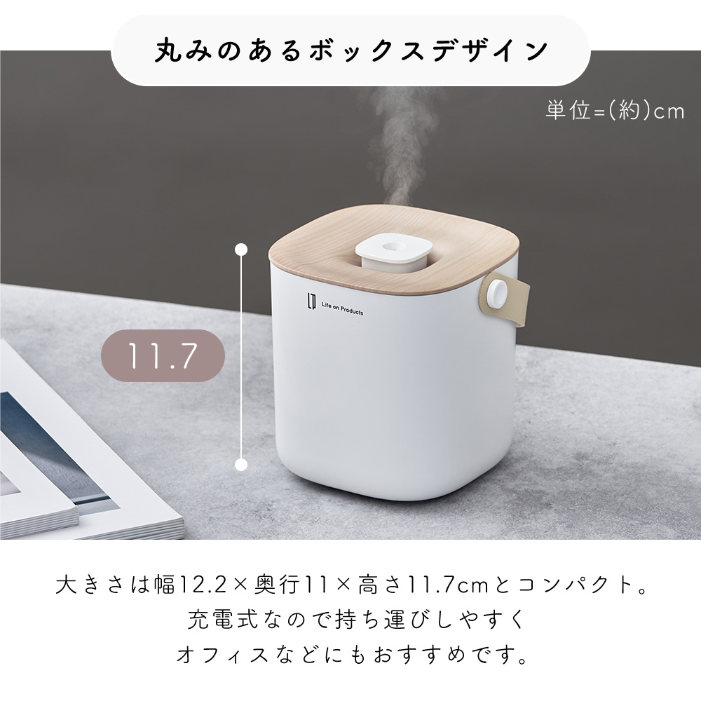 充電式ボックス型加湿器 卓上 小型 おしゃれ 北欧 木目 650ml オフィス コードレス USB 車内 可愛い コンパクト 軽量 寝室 間欠 LCAHF014