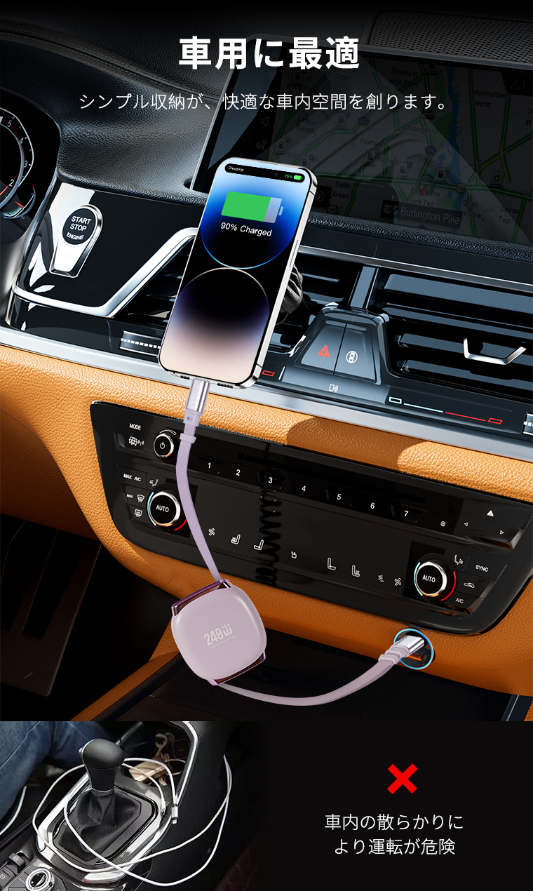 2点目半額クーポン 巻き取り式 充電ケーブル iPhone17 急速充電 Type-C ケーブル iPhone Android タイプC type-c to type-c Macbook 絡まない 車 USB-C to USB-C