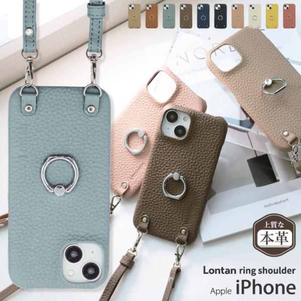 Lontan 本革 スマホショルダー iPhone14 13 ケース iPhone se 第3世代 ショルダー リング付 スタンド機能 メンズ レディース アイフォン14 13 携帯ケース YH TJ