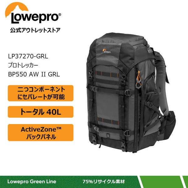 【OUTLET】Loweproロープロ カメラバッグ プロトレッカー BP550 AW II GRL 大容量40L 可動式仕切 三脚取付 レインカバー付 LP37270-GRL 【Manfrotto 公式】