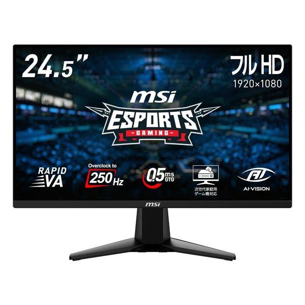 - 【商品解説】「G255XFV」はプロゲーマーも愛用する24.5インチ、フルHD(1,920 × 1,080)・250Hz・0.5msの高いゲーミング性能を併せ持っており競技性の高いゲームタイトルのプレイに最適なモデルです。パネルには引き締まった黒の表現が得意で、高いコントラスト比と高速応答を両立したRAPID VAパネルを搭載しており、奥行きのある美しい映像が楽しめます。●eスポーツ大会やプロゲーマーに人気な24.5インチサイズ●従来のVAパネルより、駆動速度を4倍に高めたRAPID VAパネルを採用●リフレッシュレート250Hz(オーバークロック設定)で滑らかな映像表示●応答速度0.5ms(GTG、最小値)で残像感の少ないクリアな描写が可能●HDR対応で、肉眼での見え方に近いリアルな表示を実現●AIビジョンで映像シーンに合わせて全体の明るさや彩度を自動で最適化●次世代家庭用ゲーム機との接続で1080p/120Hz表示に対応●アンチフリッカー、ブルーライトカット機能で目に優しい【スペック】●型式:MAG 255XFV(MAG255XFV)●JANコード:4526541051210本体サイズ:約558 × 221 × 419mm(W × D × H )モニター種類(液晶ディスプレイ):ゲーミング本体重量:約3.24kgモニターサイズ:24.5インチ解像度:フルHD(1920 × 1080)モニタータイプ:ワイド視野角:178°(H)/ 178°(V)輝度:250コントラスト比:3000:1応答速度:0.5ms(GTG、最小値)垂直走査周波数(Hz):[リフレッシュレート]240Hz(オーバークロック設定時:250Hz)Display Port:250Hz、HDMI:240Hz[走査周波数]53.04 〜 1281 KHz(H) / 48 〜 250 Hz(V)インターフェイス:HDMI 2.0b ×2DisplayPort 1.4 ×1セキュリティ:無高さ調節機能:[上下角度調節(チルト)]-5° 〜 20°[高さ調節]無[左右角度調整(スイベル)]無[画面回転(ピボット)]無対応VESA規格:VESA100パネル種類:RAPID VAパネル表面処理:ノングレア(非光沢)ブルーライトカット機能:有スピーカー機能:無壁掛け:壁掛け対応タッチパネル機能:非対応フリッカー対策機能:有入出力端子:ヘッドホン出力 ×1消費電力:使用時 18W / スタンバイ時 0.5W付属品:DisplayPortケーブル ×1、電源ケーブル ×1、クイックスタートガイド ×1仕様1:[アスペクト比]16:9[画素ピッチ (H X V)]0.2832 × 0.2802mm[色域] sRGBカバー率:90% DCI-P3カバー率:79%[最大表示色]約10億7300万色[電源タイプ]電源内蔵型[電源入力]100 〜 240V、50 / 60Hz[対応機能]アンチフリッカーアンチモーションブラーナイトビジョンブルーライトカットAIビジョンAdaptive-SyncHDRPIP / PBPこの商品は宅配便でお届けする商品です出荷可能日から最短日時でお届けします。※出荷完了次第メールをお送りします。配送サービス提供エリアを調べることができます「エリア検索」をクリックして、表示された画面にお届け先の郵便番号7桁を入力してください。ご購入可能エリア検索お買い上げ合計3,980円以上で送料無料となります。※3,980円未満の場合は、一律550円(税込)となります。●出荷可能日から最短日時でお届けします。(日時指定は出来ません。) ※お届け時に不在だった場合は、「ご不在連絡票」が投函されます。 「ご不在連絡票」に記載された宅配業者の連絡先へ、再配達のご依頼をお願いいたします。●お届けは玄関先までとなります。●宅配便でお届けする商品をご購入の場合、不用品リサイクル回収はお受けしておりません。●全て揃い次第の出荷となりますので、2種類以上、または2個以上でのご注文の場合、出荷が遅れる場合があります。詳細はこちら■商品のお届けについて商品の到着日については、出荷完了メール内のリンク(宅配業者お荷物お問い合わせサービス)にてご確認ください。詳しいお届け目安を確認する1度の注文で複数の配送先にお届けすることは出来ません。※注文時に「複数の送付先に送る」で2箇所以上への配送先を設定した場合、すべてキャンセルとさせていただきます。