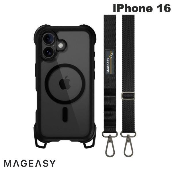 MagEasy iPhone 16 Odyssey +Strap M C MagSafe対応 カメラコントロールカバー付き ストラップ付き 耐衝撃ケース Leather Black ネコポス不可