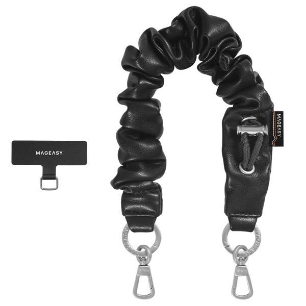 MagEasy スマホ ストラップ シュシュ Scrunchie Wrist Strap for SMART PHONE リストストラップ Leatherette Black