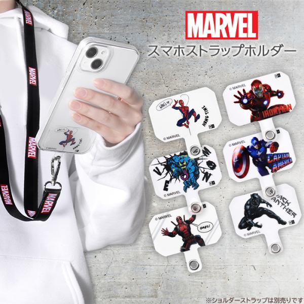 ストラップホルダー マーベル 挟むだけ スマホ ショルダー ショルダーストラップ ストラップ ベルト 斜めがけ 落下防止 スパイダーマン アイアンマン ヴェノム