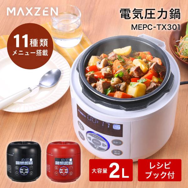 期間限定ポイント10倍! 電気圧力鍋 圧力鍋 MAXZEN 2L 炊飯器 3合 簡単 時短 保温 多機能 コンパクト シンプル 蒸し調理 ヨーグルト ケーキ MEPC-TX301-WH