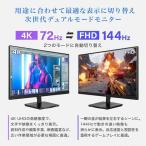 - 商品説明★ 仕事もプライベートも妥協しない1台。シーンで最適化する、 デュアルモード搭載。★ 用途に合わせて最適な表示に切り替え 次世代デュアルモードモニター2つのモードに自動切り替え・4K 72Hz4K UHDの高解像度で、文字や映像をくっきり表示。 資料作成や編集作業、映画鑑賞など、広い作業領域が必要な場面に最適。・FHD 144Hz一瞬の差が結果を左右するシーンに。144Hzで動きの速い映像も滑らかに表示。 反応速度と視認性を 重視するゲームプレイに最適。★ 応答速度1ms 動きの速いシーンも、ブレを抑えて鮮明に応答速度1ms (GTG) により、 残像感や表示の遅れを抑制。動きの激しいシーンでも、瞬時の判断を支えるクリアな視界を実現します。★ 作業も映像も美しく映す、4K UHD3840x2160の高画質でリアルな色彩を美しいまま映し出します。★ 鮮やかさも、速さも、妥協しないFast IPSパネル広い視野角はそのままに、応答速度を高速化。角度による色や明るさの変化を抑え、高透過率でクリアな表示を実現。★ 99% sRGB対応 豊かな階調で色を正確に再現99% sRGBカバー率と10.7億色表示により写真や映像、デザイン作業も自然で階調豊かな表現を実現します。★ 映り込みを抑えた、快適な視界ノングレア(非光沢) モニターは反射や映り込みが少ないため、目に与える負担が少なく長時間の使用にもおすすめです。★ Adaptive-Sync対応画面のカクツキや遅延を抑えることができるためゲームのプレイにもおすすめ★ 画面のちらつきを低減目の負担の原因となる画面のチラつきを抑え、長時間の作業や視聴でも快適に使えます。★ 目にやさしいブルーライト軽減目の疲れの原因となるブルーライトを軽減し、長時間の使用でも快適です。★ 豊富なゲーム設定各シーンや映像によって最適なモードを設定することができます。★ カウントダウン表示機能オンとオフの時間、表示位置を設定することができ、ゲームのプレイ時間がすぐにわかります。★ 見やすい角度に調節可能画面を前後に傾けて見やすい角度に調節できます。※液晶パネルを強く押さないでください。破損や転倒の原因になります。★ 壁掛けやアームの取付けが可能VESAマウント対応のため壁掛けやアームに取り付けて使用できます。壁掛けネジ寸法:100mm×100mm★ 省スペースでマルチモニターにも最適/3辺フレームレス採用スペック* 画面サイズ: 27.0インチ* バックライト: LED* 駆動方式: FAST IPS* 画素数…・4K: 3840×2160・FHD: 1920×1080* 応答速度: 1ms(GtoG)* 視野角: 左右約178°/上下約178°* 輝度…・標準: 350cd/m2・最小: 300cd/m2* コントラスト比: 1000:1* 画素数ピッチ: 0.15525(H)×0.15525(V)* 表面処理: 非光沢* 表示色: 10.7億色* 色空間: sRGB:99% DCI-P3:95%* リフレッシュレート(最大): 3840×2160:72Hz/1920×1080:144Hz* フリッカーフリー機能: ○* 機能: Adaptive-sync、DCR、フリッカーフリー機能(ちらつき軽減)、ローブルーモード(ブルーライト軽減)、各種ゲーム設定、ピクチャー設定、色設定、ナイトビジョンモード、Game+機能設定(AIデュアルモード、オールゲームモード、ゲームアシスタント、ダイナミックOD)、省エネ設定など* 入力端子: HDMI 2.0×2、DisplayPort1.4×2* ヘッドホン端子: ×1* 電源: ACアダプター 入力:AC100-240V 50/60Hz 1.8A MAX 出力:DC19V 3.42A* 消費電力: 最大≦65W 通常≦38W 待機時≦0.5W* 使用環境: 温度5〜35℃ 湿度80%以下* 保管環境: 湿度-15〜45℃ 湿度90%以下* モニター可動範囲: チルト:-5°〜20° ±2°
