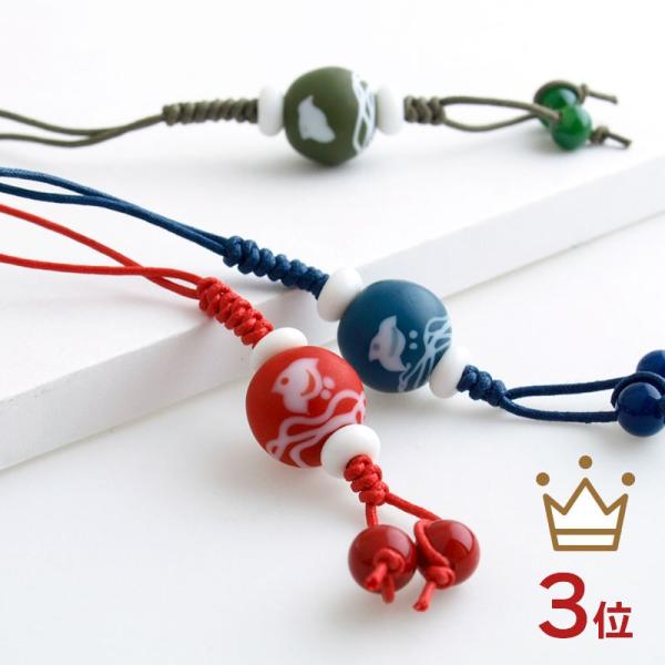 縁起にいいと言われる「波に千鳥」を描いたとんぼ玉のストラップです。