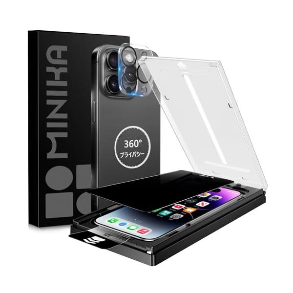 秒で貼り付け MINIKA 360度 見えないフィルム iPhone 14 pro ガラスフィルム 覗き見防止 iPhone 14pro 覗き見