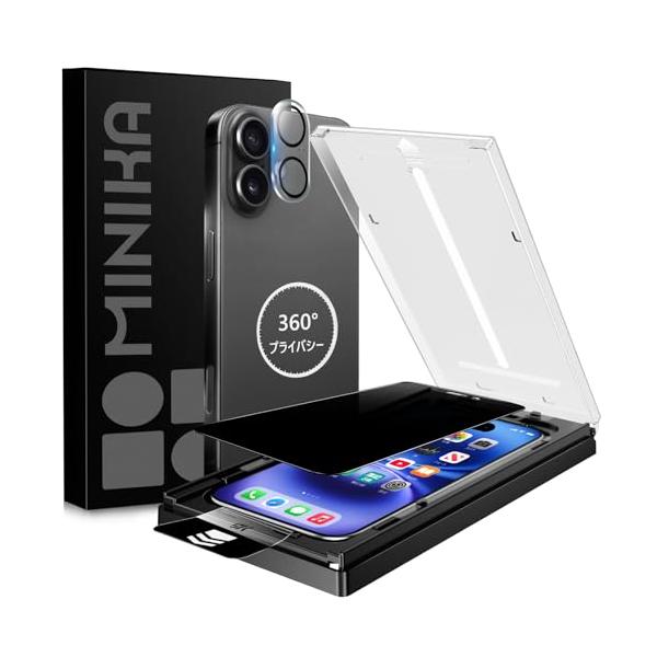MINIKA 秒で貼り付け360度 見えないフィルム 用の iPhone 16 ガラスフィルム 覗き見防止 用の i Phone16 覗き見防止
