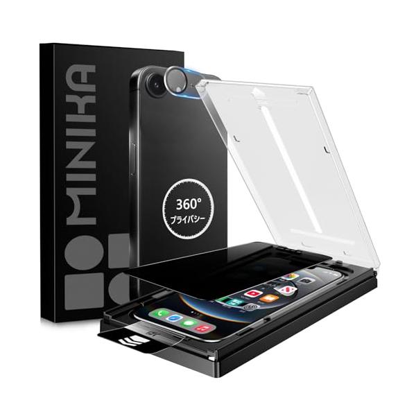 MINIKA 秒で貼り付け360度 見えないフィルム 用の iPhone 16e ガラスフィルム 覗き見防止 用の i Phone16e 覗き見