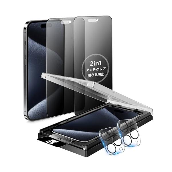 (2枚セット)覗き見防止+アンチグレア/iPhone15Promax/-
