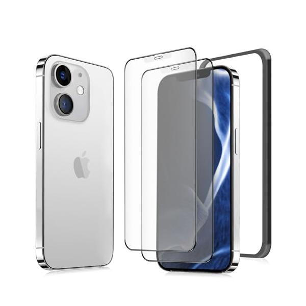 ・対応機種 iPhone12 / iPhone 12Pro(6.1インチ)専用。 パッケージ内容 iPhone12/12Pro 用の ガラスフィルム(黒縁あり)×2枚 + 貼り付けガイド枠×1個 + クリーニングセット×2枚。