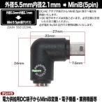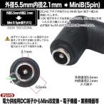 外径5.5mm 内径2.1mm DC端子(メス)→Mini B 5pin(オス)電源アダプタ L型 DC端子 車載機器 電子機器 事務機器 無線機器充電等 ZUUN 5521ZC5ML