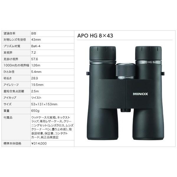 MINOX ミノックス双眼鏡 APO HG 8x43 望遠鏡倍率8倍 レンズ有効径43mm ウッドケース化粧箱入 純正品検査証付 [日本正規品]