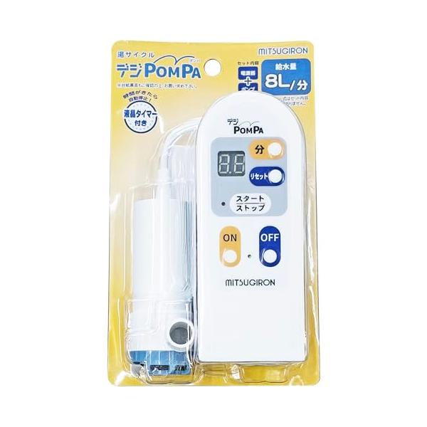 - スタイル:デジPOMPA◆商品名:ミツギロン(Mitsugiron) バスポンプ 電源器 ポンプ お風呂 残り湯 洗濯機 節水 給水量 8L/分 AMZデジPOMPA ホワイトセット内容:電源器、ポンプ商品サイズ:(電源器)縦132mm×横52mm×高さ45mm,(ポンプ)縦92mm×横57mm×高さ36mm原産国:中国お風呂の残り湯をお洗濯に再利用できる洗濯 機用ポンプ!業界初のデジタルタイマーが搭載されたお風呂ポンプで取り扱いが楽になります【お手軽節水】お風呂の残り湯をお洗濯に再利用することができます。1年間で浴槽約120杯分の節水に♪ 【コンパクト】スイッチング電源採用により業界最軽量でコンパクトなため、取り扱いがとても楽です。 【業界初】残り時間が確認しやすい液晶デジタルタイマー付きで見やすくリニューアルしました。 【安全性】バスポンプを運転しているかどうかひと目でわかるパイロットランプが搭載されています。消し忘れ防止に!