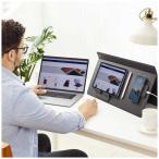 - 貼って、立てて、整理して。全てが叶う、多機能デスクマット。デスク環境を思うままにカスタマイズできるので、今まで以上に整理整頓された、快適で集中できる仕事環境が作れます。■視線移動を減らして、流れるような作業を 自分だけのマルチスクリーン環境を作れば、よりスムーズに作業ができます。集中力が続く鍵は、対象物を目線の高さに、そして余分な視線移動を無くす事です。■スライドで簡単調節。見つけましょう、あなただけの最適角度 マットの下はスライド式で25°〜60°の角度調節ができます。パソコン、タブレット、読書、更に使い方に合わせた角度調節で、作業がもっとはかどります。■ソファやベッドの上でも快適作業 付属のクッションは裏側がマグネット式になっていて、マットの裏側に取り付けることで、ソファやベッドに座りながら作業するときのレッグクッションになります。デスク上での作業時にはリストレストとして、手首の負担も軽減してくれます。■どこでも自分だけのデスク環境を 自分の部屋、リビングからキッチンまで、気軽にどこでも作業できる様に、マットの表面には十分なスペースを設けました。作業スペースを変えることで、リラックスしながら一日中アクティブに過ごせます。■NFC機能搭載でスマホでタッチ マット内には2つのNFCタグを内蔵。お気に入りの作業音楽をかけて、30分タイマーを起動させたり、作業スペースの照明を付けたり消したり、アプリやIoT製品と組み合わせることで、ストレスフリーで素早く作業を始められます。■デュアルスクリーンで、効率もグッと上がる タブレットとスマホを同時に立てかける事ができます。スマホで確認しながらタブレットでイラストを描いたり、タブレットで資料を見ながらスマホでメモしたり、今までの作業がもっと楽になります。■同梱アクセサリー タブレットホルダー、ケーブルホルダー、MagSafe充電パッド(type-cケーブル)、Snap Phoneシール