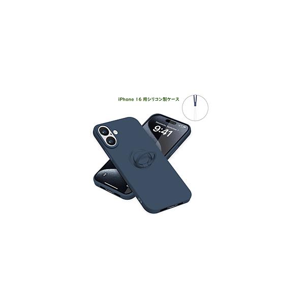 - RM iPhone16用シリコンケース(リング付・ネイビブルー)<br>携帯ケースとリングは一体型でシンプル、シリコン製なので落下しにくく、本体を擦り傷、<br>衝撃を保護します。
