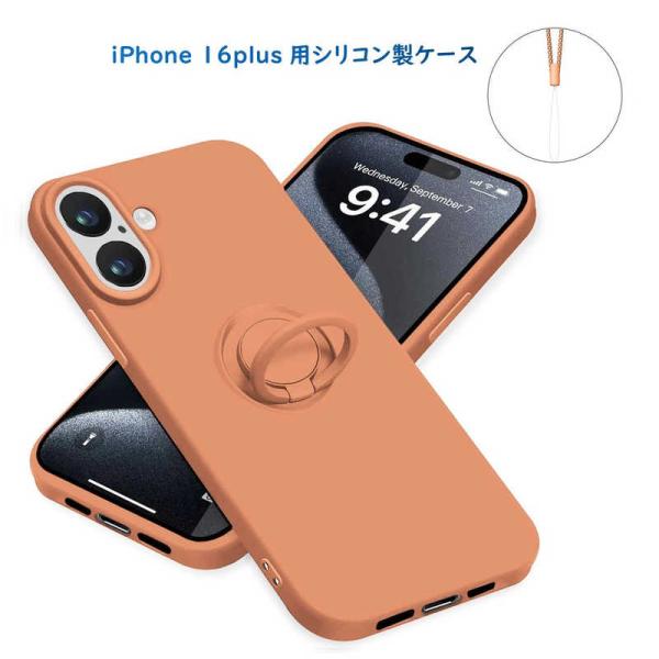 ROYALMONSTER iPhone 16 Plus シリコン製ケース リング付 OR RM-16PLSili-OR